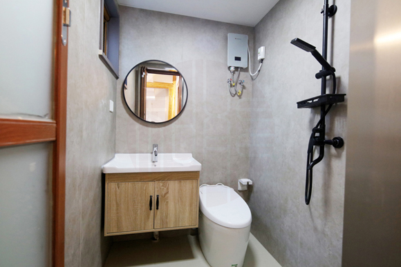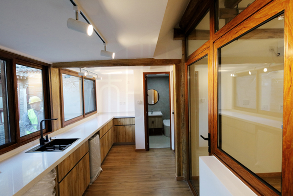 此次改造項目位于北京市西城區(qū)前細瓦廠胡同里,旁邊即是國家大劇院。老舊改造的重點難點在于如何在不破壞原房屋結構下進行翻新,且不產生噪音影響周邊人群的生活及辦公。此次和能裝配式裝修運用SI管線分離的裝配式施工方式完美解決舊改難點,且在15平米極小空間內實現了全屋收納,最大限度的空間使用,讓居者體驗感大幅提升。