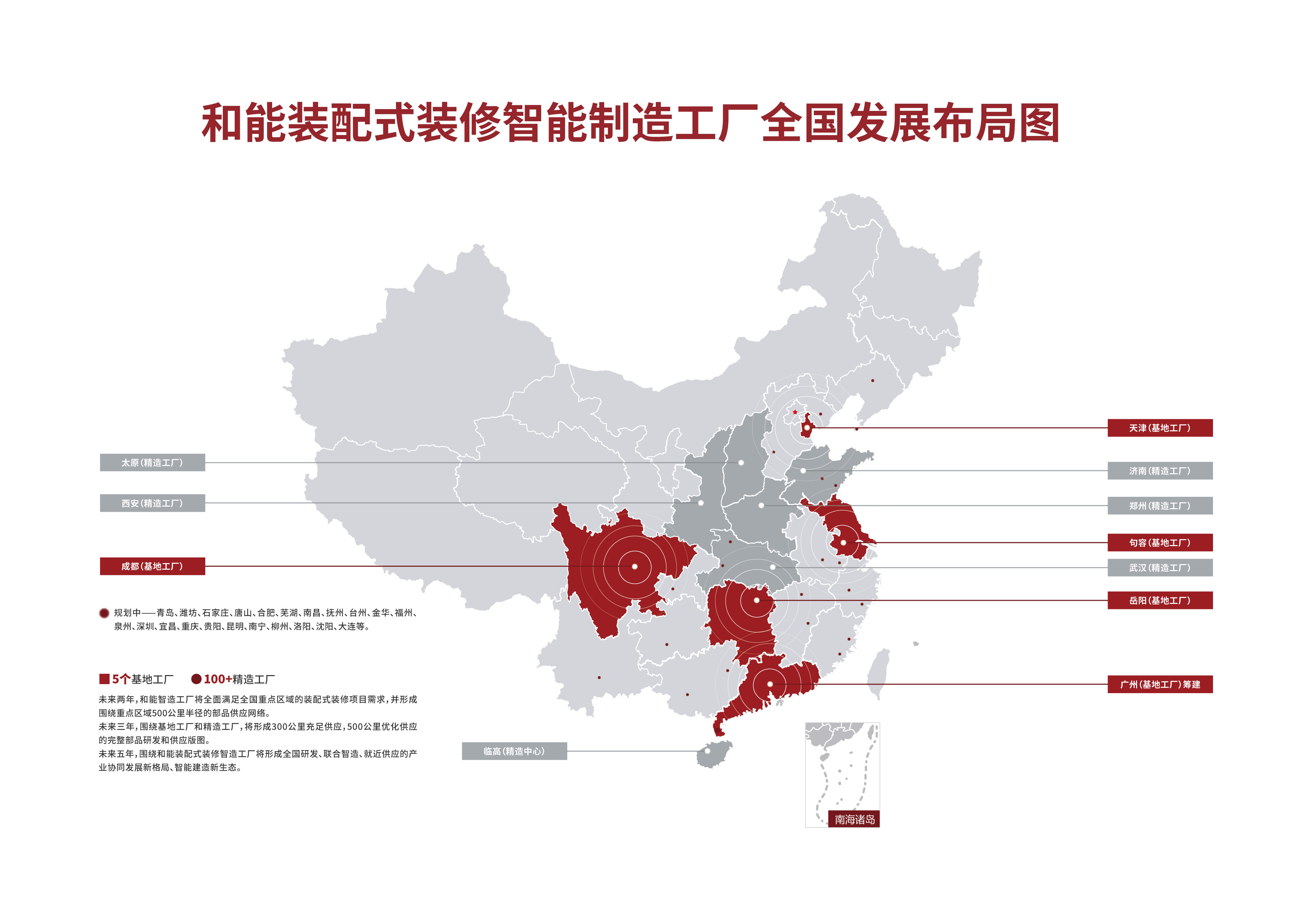 隨著裝配式建筑、綠色建筑以及智能建造在全國各地快速發展,裝配式裝修已經成為推動中國建筑工業現代化轉型,實現建筑高質量發展的重要內容。而和能也在加大全國布局力度,加快企業建設步伐,成都、江蘇基地相繼投產,并加速在廣州、濟南、海南、武漢等地的布局。