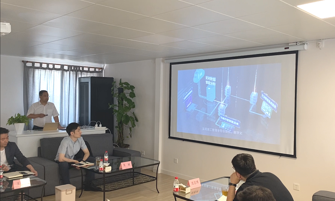 和能人居科技集團總裁閆俊杰對津投資本董事長侯宇鋒一行的到訪表達了熱烈歡迎,并與來賓分享了和能在智能建造方面的思考和取得的成果。