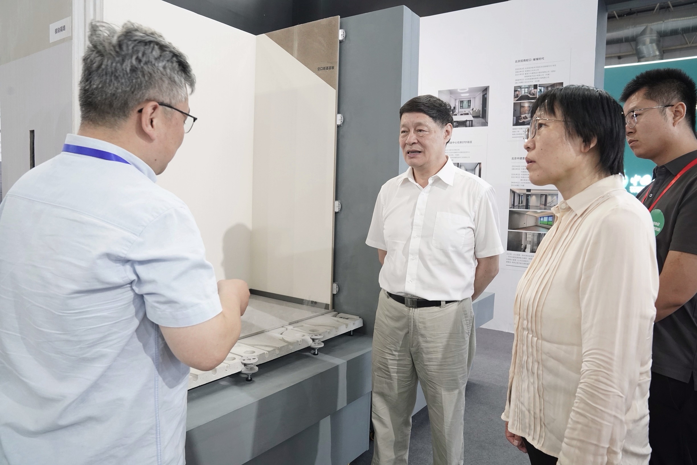 展會期間,和能裝配式裝修好房子裝修展廳除了受到住建部領導的重點關注之外,也收獲了眾多業內人士的追捧,中國房地產業協會副會長兼秘書長陳宜明等領導紛紛蒞臨和能裝配式裝修好房子裝修展廳巡館。