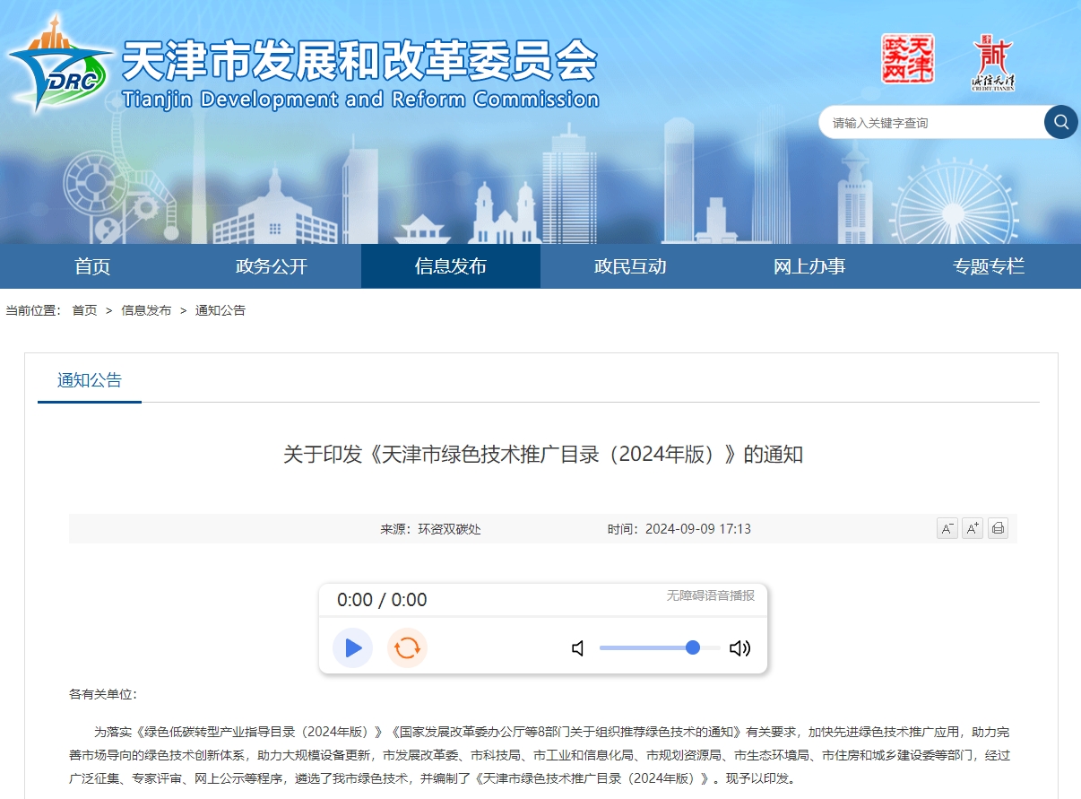 為落實(shí)《綠色低碳轉(zhuǎn)型產(chǎn)業(yè)指導(dǎo)目錄(2024年版)》《國家發(fā)展改革委辦公廳等8部門關(guān)于組織推薦綠色技術(shù)的通知》有關(guān)要求,加快先進(jìn)綠色技術(shù)推廣應(yīng)用,助力完善市場導(dǎo)向的綠色技術(shù)創(chuàng)新體系,助力大規(guī)模設(shè)備更新,市發(fā)展改革委、市科技局、市工業(yè)和信息化局、市規(guī)劃資源局、市生態(tài)環(huán)境局、市住房和城鄉(xiāng)建設(shè)委等部門,經(jīng)過廣泛征集、專家評(píng)審、網(wǎng)上公示等程序,遴選了天津市綠色技術(shù),并編制了《天津市綠色技術(shù)推廣目錄(2024年版)》。