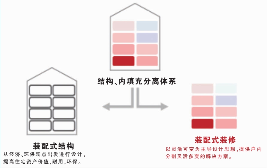 結(jié)構(gòu)與內(nèi)裝修、管線三分離(SI理念),內(nèi)裝修獨(dú)立于建筑結(jié)構(gòu),方便全壽命期維修拆改。
