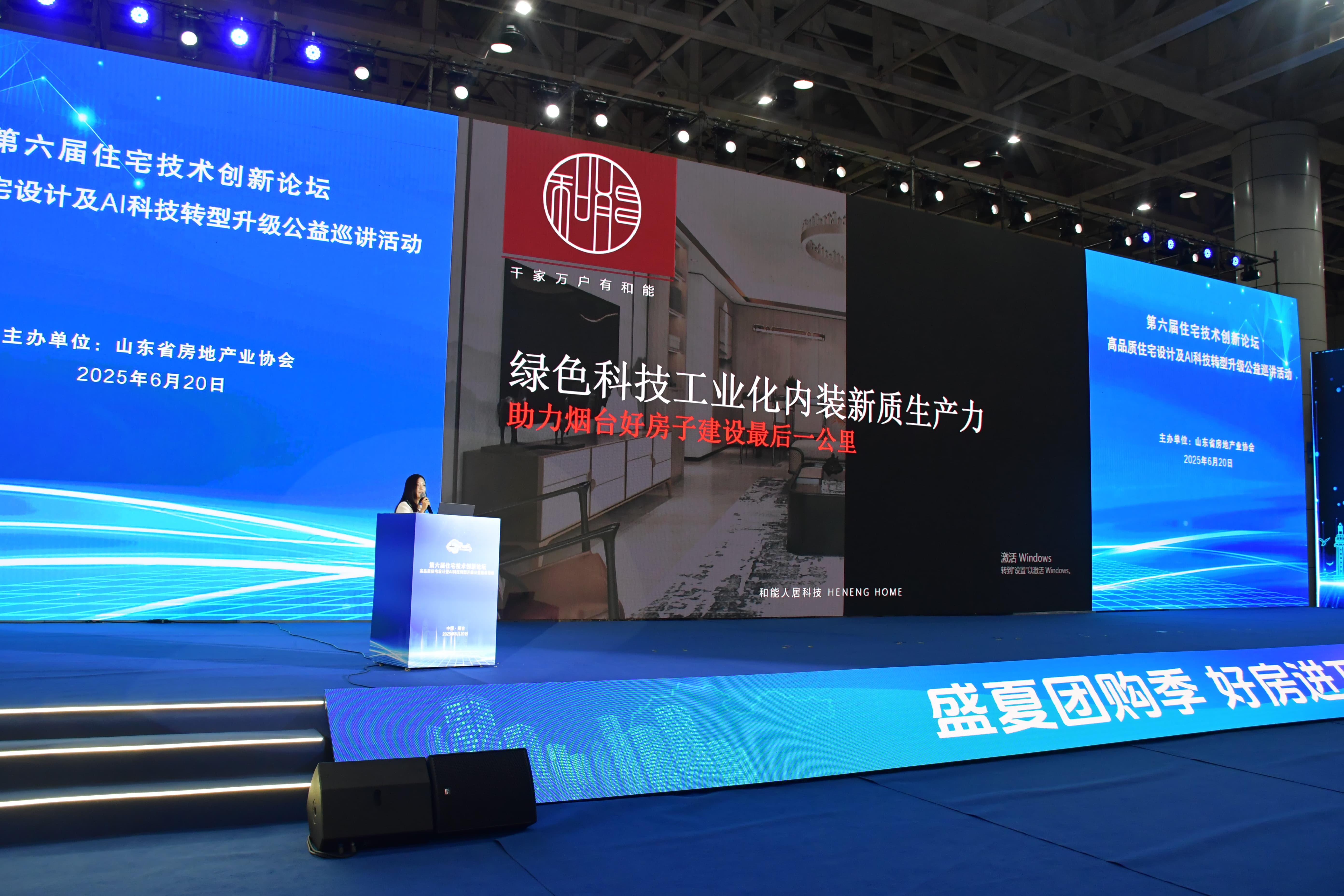 和能人居科技華北區(qū)域總經(jīng)理吳丹受邀出席論壇,現(xiàn)場分享了“綠色科技工業(yè)化內(nèi)裝新質(zhì)生產(chǎn)力助力煙臺好房子建設最后一公里”的主題演講。她向現(xiàn)場嘉賓介紹了和能裝配式裝修技術,以及三大科技創(chuàng)新,同時分享了和能綠色裝修技術和B+C新交付模式助力新房變好房理念。