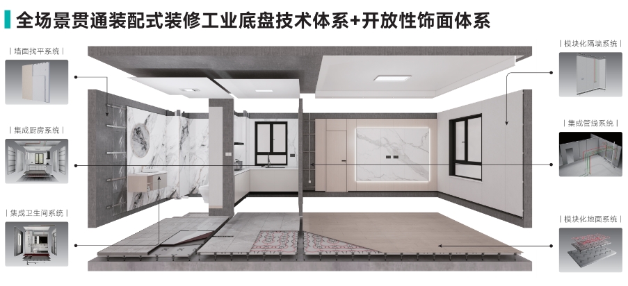 近零碳建筑賽道緊扣“好房子”建設(shè),以好材料、好技術(shù)、好建造、好運(yùn)維為核心,旨在打造系統(tǒng)性近零碳建筑解決方案。和能裝配式裝修及智能建造技術(shù)采用裝配式裝修融合智能建造技術(shù)建立了基層裝修與飾面層可分離的全屋裝修綠色部品體系,基層裝修使用模塊化的工業(yè)底盤部品提升品質(zhì)與效率,飾面層支持多樣化選擇與DIY定制,解決裝修標(biāo)準(zhǔn)化與個性化的協(xié)調(diào)問題,同時依托智能化、低碳化生產(chǎn)與施工技術(shù),減少室內(nèi)裝修空氣、噪音、垃圾污染,降低能耗、物耗和水耗,實(shí)現(xiàn)建筑全生命期綠色低碳發(fā)展,滿足“人民對美好生活向往”。