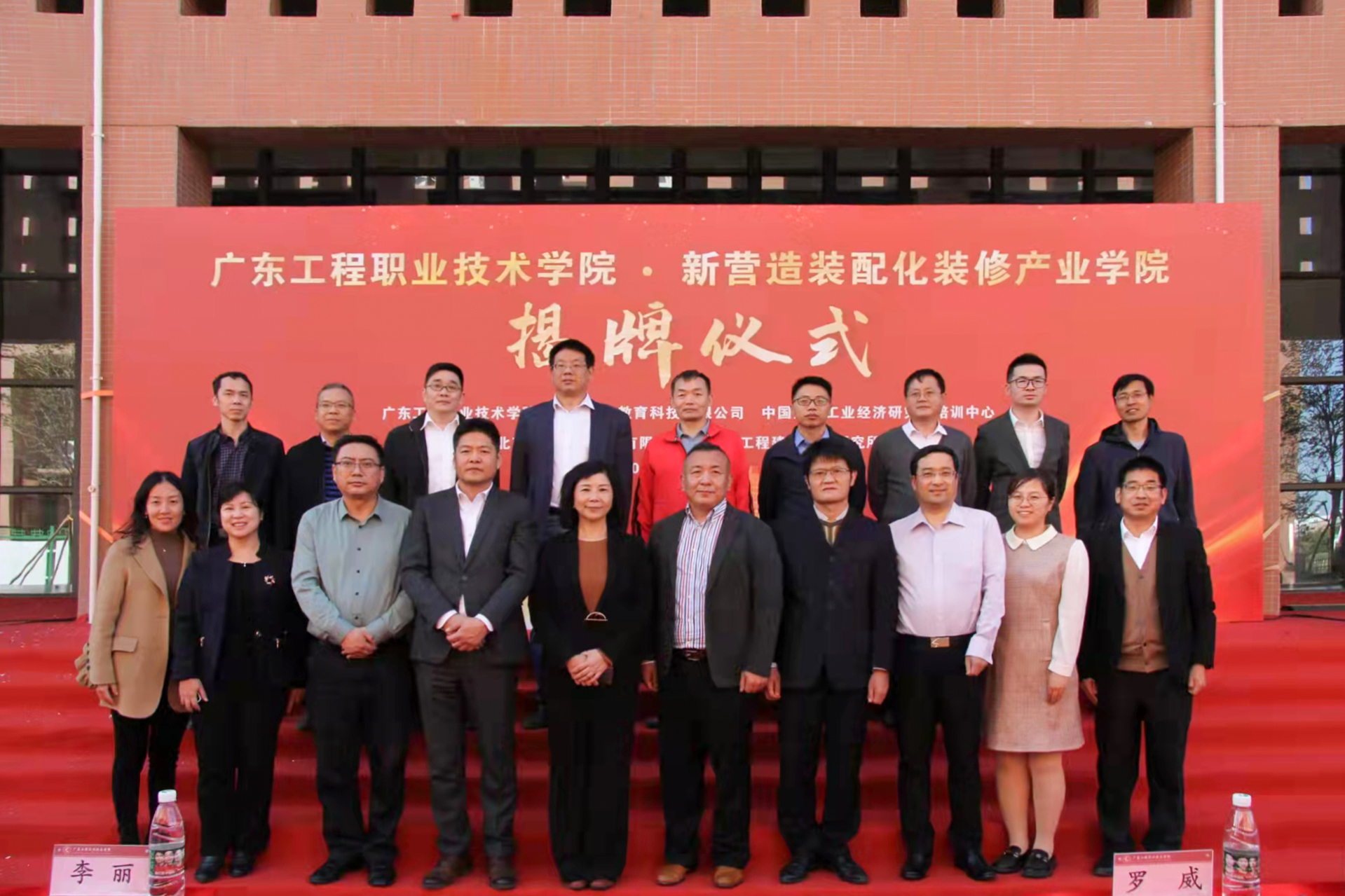 112614時,揭牌儀式于廣東工程職業技術學院正式召開,由吳志敏副校長主持,李麗校長致開幕辭,北京和能人居科技集團副總裁劉云龍、百庫教育科技有限公司董事長高清祿、中國建材工業經濟研究會培訓中心執行主任羅威到場致辭并祝賀新營造裝配化裝修產業學院落地廣東工程職業技術學院。